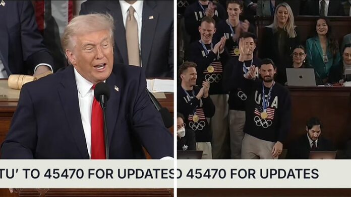 President Donald Trump just introduced the U.S. men’s hockey team as his special guests at the State of the Union address on Tuesday — showing the gold medal winners grinning from ear-to-ear.