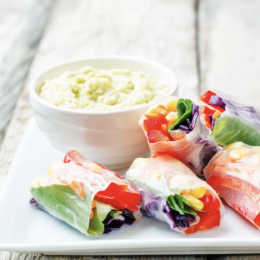 Rainbow Spring Rolls with Avocado Hummus