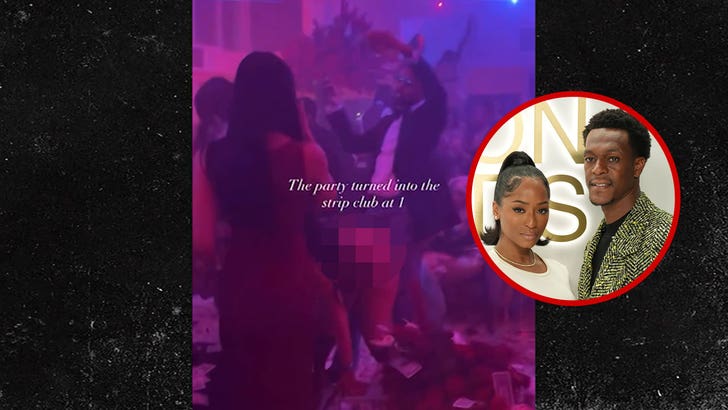 One video showed a bunch of strippers dancing in a club-like setting, including one woman twerking on a guest … in a room raining dollar bills, which covered the entire floor.