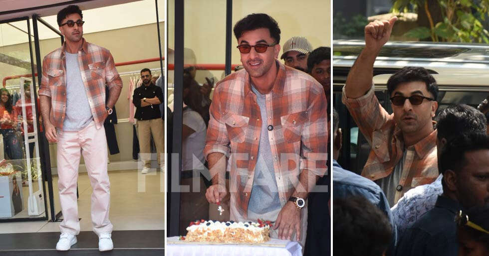 The actor was dressed in a checkered orange, brown and white shirt, paired with a light gray tee and light pink trousers. He completed his look with side parted hair and brown shades. The Animal star waved at his fans while interacting with the paparazzi. Interestingly, he also cut a cake in front of the store and celebrated the moment with everyone present.