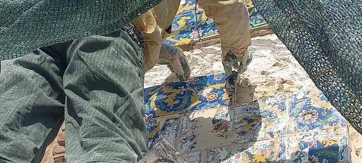 Saadati added that the remaining tiles, which had been separated from the site due to the hollowness of the plaster under the work, were removed from their place after numbering, and the foundation was made with beta plaster, and the tiles were installed in their original place according to the number.
