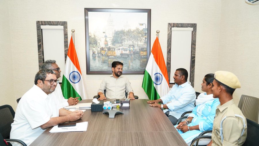 The Chief Minister handed over a Home Guard appointment letter to Shiva’s son, Venumadhav, and directed authorities to provide employment support to the family. He also agreed to examine Shiva’s request for the construction of a swimming pool near Tank Bund to create livelihood opportunities.