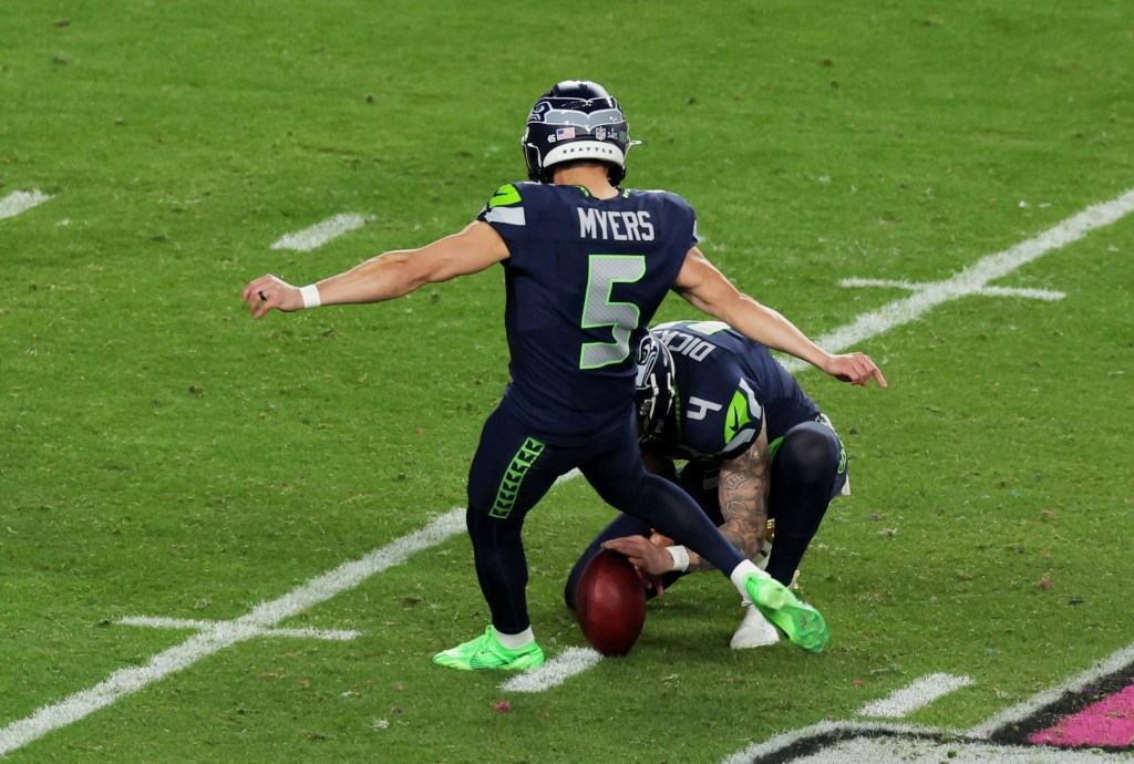 Seahawks kicker Jason Myers shared a heartfelt moment with his biggest supporters Sunday after Seattle’s 29-13 win over the Patriots in Super Bowl 2026.