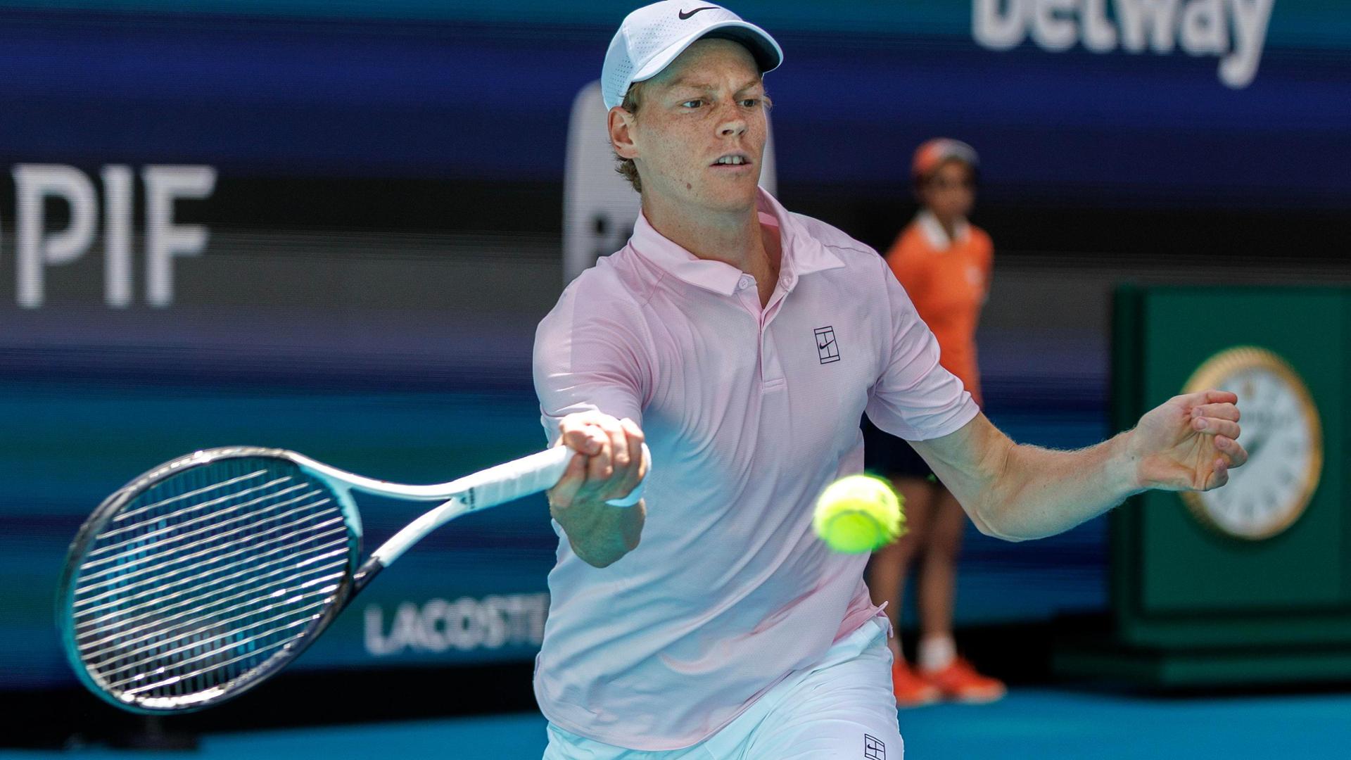 Vittoria semplice per Jannik Sinner al debutto del torneo Atp Miami Open contro il bosniaco Damir Dzumhur, n. 76 della classifica mondiale. L’azzurro, numero 2 del mondo, si impone con un doppio 6-3 in un’ora e 10 minuti e vola al terzo turno. Nel prossimo incontro, l’azzurro se la vedrà col francese Corentin Moutet (n.33) o col ceco Tomas Machac (n.48).