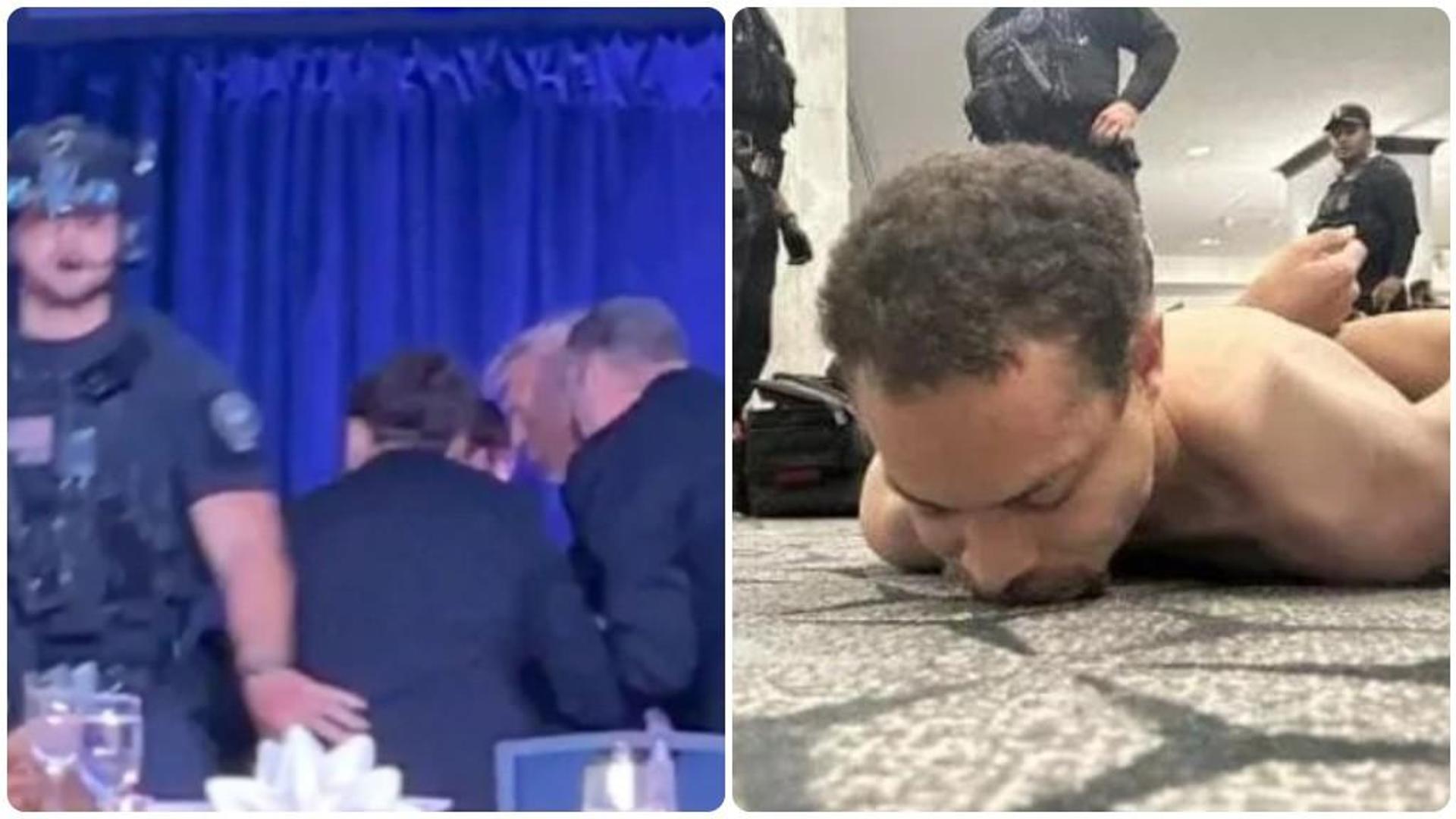 “Stay Down”, state giù l’urlo degli agenti. Il vicepresidente Vance in una attimo viene letteralmente strappato dalla sedia da un agente, in quattro si buttano addosso a Trump, lo sollevano e lo portano via. Prima però il presidente è per terra, gli agenti lo proteggono mentre quasi gattona verso di lui e l’uscita anche Weijia.