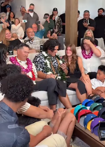 Spencer Fano had a big celebration after being drafted Thursday night, and his fiancée sure got an up-close view at it all.