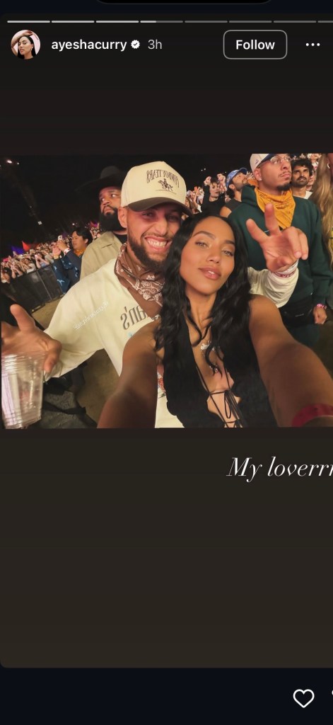 Ayesha Curry offered a glimpse into the family’s pivot to Coachella, posting on her Instagram story of the couple smiling in front of the stage.