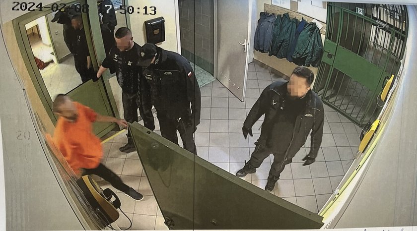 8 lutego 2024 r. na oddział D-3 ruszyli: dowódca zmiany oraz funkcjonariusze pełniący służbę, między innymi Michał i Przemek oraz ich koledzy. Po wyprowadzeniu osadzonego rozpoczęto kontrolę celi, a jego skierowano do rewizji osobistej. To pomieszczenie co prawda nie jest objęte monitoringiem, ale wejście i wyjście rejestruje kamera. Na nagraniach widać, jak do środka wchodzi 4 funkcjonariuszy. To normalna procedura. Według nich wszystko przebiegało normalnie.