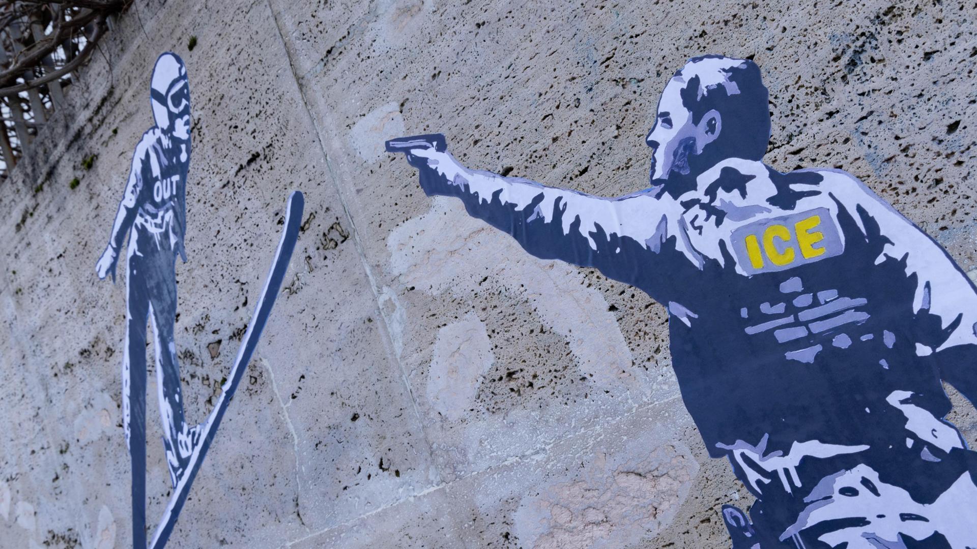 “Ice Out” è la nuova opera-denuncia di Laika, affissa davanti alla sede del CONI a Roma. Nell’immagine un agente dell’ICE spara a uno ski jumper; sullo sfondo una montagna rovesciata e il logo olimpico trasformato in un mirino. L’artista contesta la presenza dell’agenzia statunitense ai Giochi di Milano-Cortina 2026 e accusa Giovanni Malagò di non aver preso una posizione netta. L’opera invita infine alla manifestazione “Mobilitiamo la città – ICE OUT”, in programma il 6 febbraio a Milano.