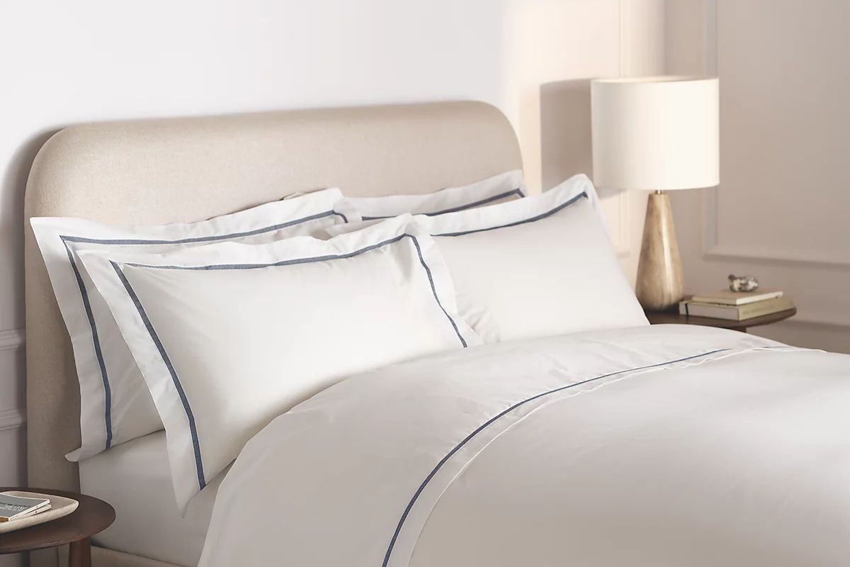 Crafted from cotton percale with a 200-thread-count, this bedding feels cool and crisp against the skin. Featuring a coloured ribbon insert along the Oxford borders, it’s a subtle way to add a smart accent to the bedroom while creating a relaxing setting.