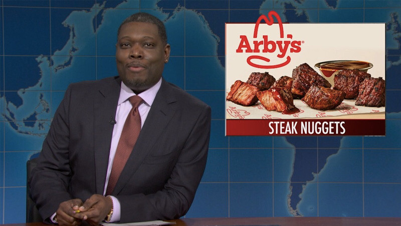 “Arby’s announced that they are adding a new item to their menu: steak nuggets! Although, you can make your own steak nuggets by eating a bunch of Arby’s.”