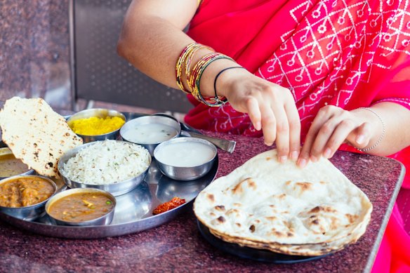 Sometimes bluffing is just good manners. When people of a certain culture eat with their hands, as in Africa, Asia and the Middle East, it’s respectful to do the same. Wash your hands first and use your right hand to eat – either using flatbread or rice to help pick up the morsels of food, or by gracefully pinching together your thumb, index finger and middle finger as a group and using your fingertips. You can press soft foods such as rice into a wad for safe transportation to your plate, rather than directly to your mouth.