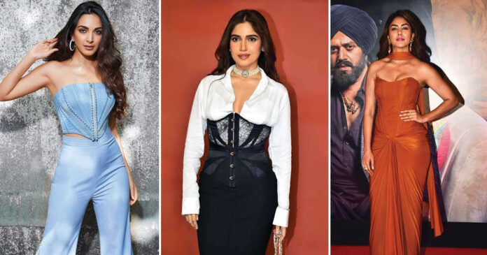 Corsets made a comeback in a far more comfortable form. Flexible fabrics, relaxed boning and breathable silhouettes made them easy to wear. Styled with denims, trousers or layered over shirts, these tops added structure without stiffness. Bollywood celebrities embraced the trend for casual outings, pairing corset blouses with oversized jeans for a look that felt flirty yet effortless.