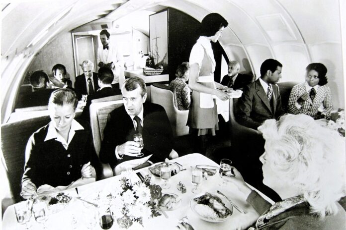 While meals served in today’s first and premium airline cabins can be quite fancy, they never seem as swanky as the meals featured in vintage photos from the “golden age” of air travel, when the prime rib was evidently sliced at your seat, and the lobster thermidor and caviar courses were common.