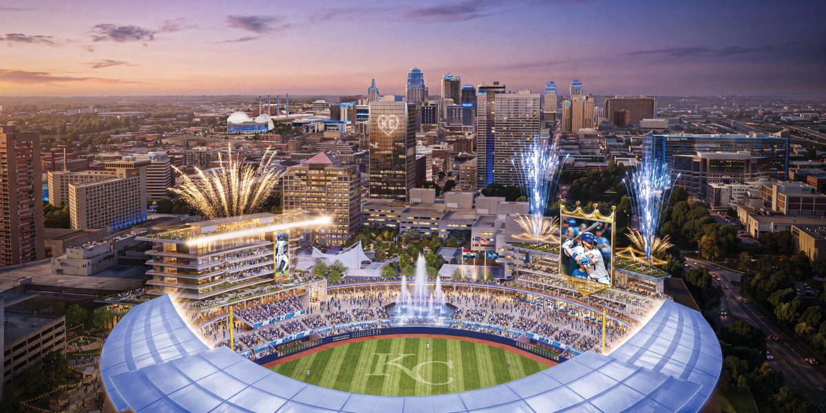 Hallmark intends to build a new headquarters in the area, which is connected by a streetcar to the Power & Light District, where the T-Mobile Center serves as its anchor. That part of downtown Kansas City will provide the backdrop beyond the outfield fence.