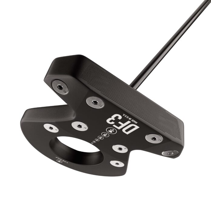 The DF3 is entirely CNC milled from 6061 aluminum, with 8 screws on the bottom made of steel or tungsten in various densities to precisely target swing weight and lie angle balance each putter.