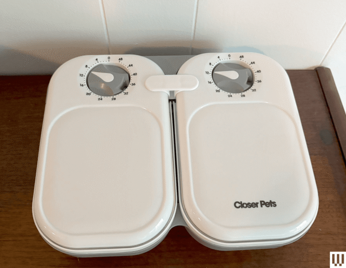 Closer Pets C200 2-Meal Automatic Pet Feeder for $50: This automatic feeder is super simple, which is both its weakness and its strength. It’s essentially two shallow plastic containers with stainless steel inserts (both dishwasher safe) and tamper-resistant lids that are locked and automatically open using an old-school egg-style timer that runs on a AA battery rather than electricity. Although the container has an ice pack to keep the wet food cool, after one night it lost virtually all of its coolness. There’s a lid-link clip attachment, a small piece of plastic that links the lids to ensure they will open at the same time, which is super helpful for owners of two cats like me. I wish the timer were electric so I could program it to the exact time I want it open, rather than guesstimating the timing on the little marks. However, this is a simple solution to help make sure both my cats are given wet food without me having to wake up at the crack of dawn.