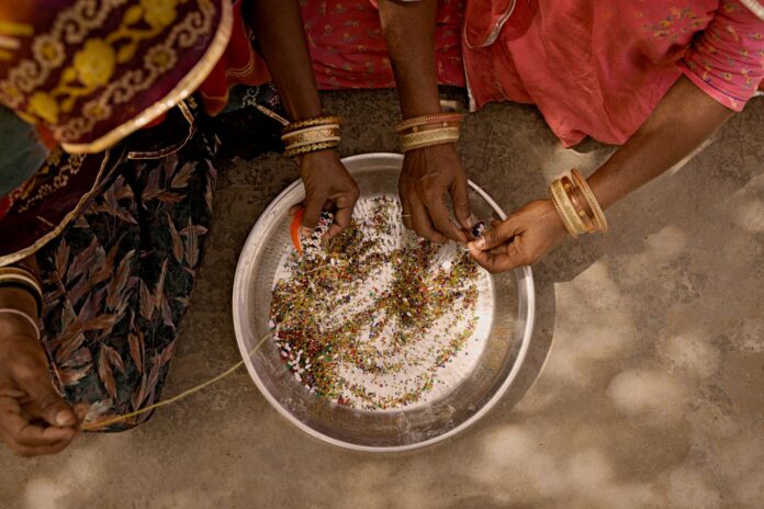 That journey sits at the heart of Unbound by Beads: Migration, Memory & Material, an upcoming exhibition at London Craft Week 2026. Helmed by MOI Fine Jewellery, the contemporary offshoot of Aurus founded by husband-and-wife duo Puja and Kunal Shah, in collaboration with the Princess Diya Kumari Foundation’s Artisan Collective, the exhibition traces how these globally traded beads became part of matrilineal traditions within the Meghwal community of Barmer, in Rajasthan.
