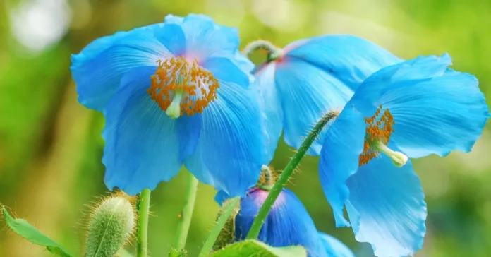 The Himalayan blue poppy belongs to the poppy family and is found across Tibet, Bhutan, Nepal, parts of India, and some regions of southwest China and Myanmar.