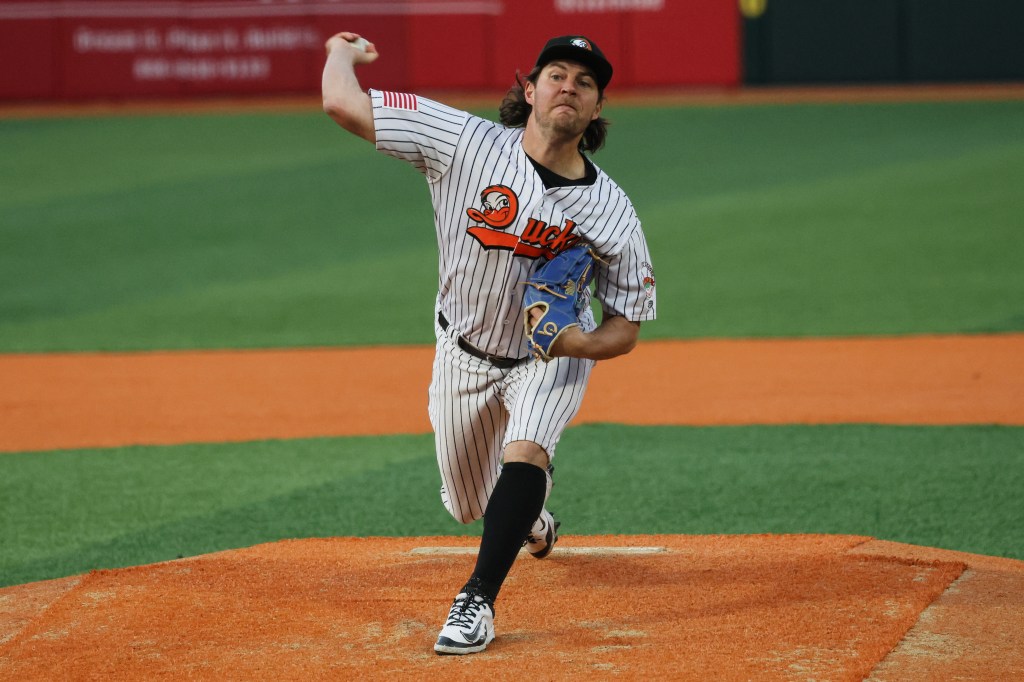 Bauer, who spent the past three years playing abroad, pitched four innings in front of a sellout crowd (6,896) in Central Islip, allowing two runs, five hits and three walks, while recording eight strikeouts on 93 pitches (56 strikes).