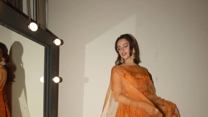 Triptii Dimri stepped out for Netflix’s Maa Behen promotions in a burnt orange anarkali set from Drishti & Zahabia. The look feels celebratory in its dressing, with dupion silk and organza lending it a regal edge.
