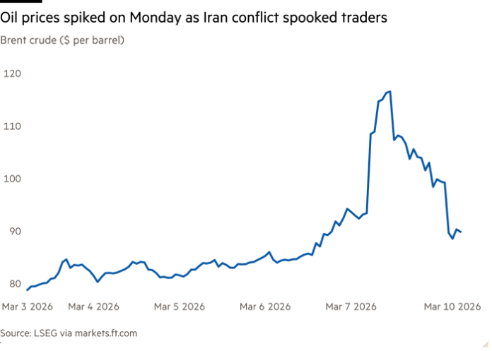 His comments on Monday afternoon came after oil prices rose about 30 per cent to almost $120 a barrel at the start of trading in Asia, roiling equity markets and triggering alarm about the impact of the war on the global economy.
