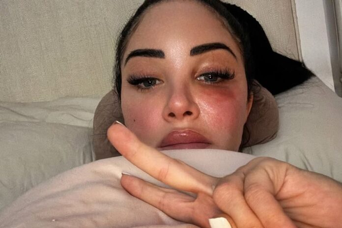 Taking to Instagram, updating her legion of loyal fans and sharing a snap of herself flashing the peace sign with a visibly swollen eye, Tulisa said: “Trying to turn my Insta into a place of authenticity. All that crazy life experience into a bit of inspo and tools for others. Which includes sharing my highs and the lows!”