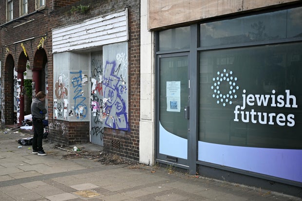 No one was injured. Photos show a sign for the education organization Jewish Futures still visible in the building’s window. The Community Security Trust, a charity that provides safety advice to Jewish groups, said the fire “caused minimal damage to a nearby doorway.”