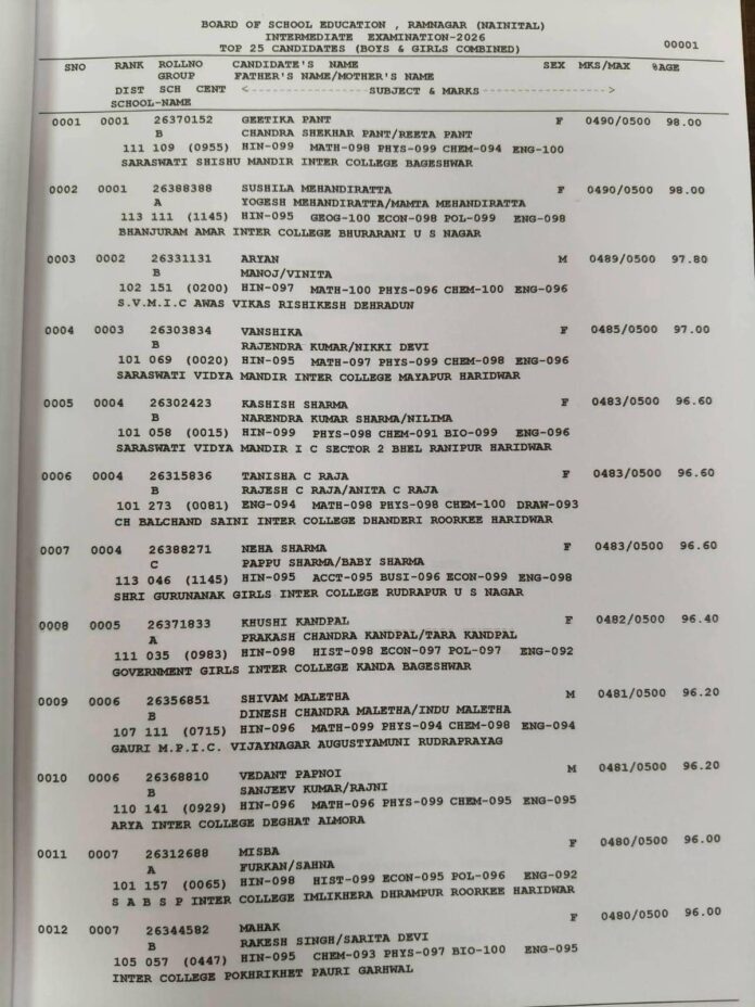 Among all districts, Bageshwar has emerged as the top-performing region in Uttarakhand. The district recorded an impressive pass percentage of 94.81%, securing the leading position in the state rankings. This performance highlights the district’s strong academic outcomes compared to others.