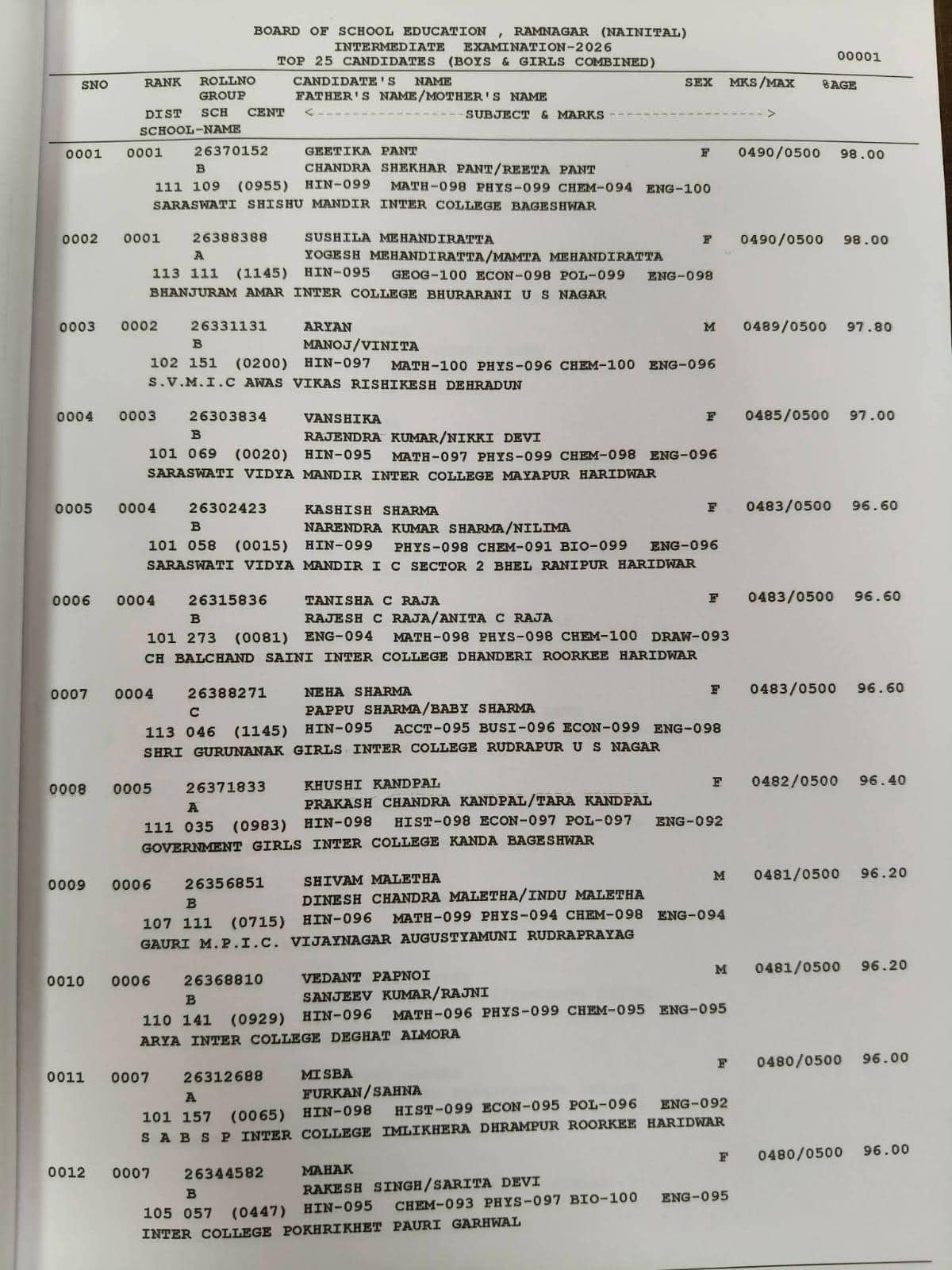 Overall, the UK Board Class 12 Result 2026 reflects a balanced and encouraging performance trend. With a high pass percentage and strong show by top rankers, the results underline consistent academic progress among students in the state.