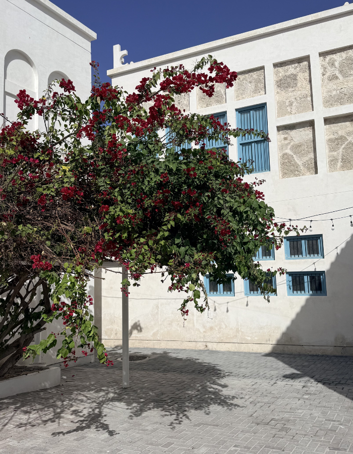 Case in point: The Pearling Path. A 3.5-kilometre trail that UNESCO inscribed as a World Heritage Site in 2012, winding between seventeen buildings from the time of the thriving pearl industry – shops and storehouses, a mosque, the homes of wealthy merchants, all constructed from coral stone that has somehow survived when so much else has crumbled. Walking between them with AlSaad pointing out details we would have missed, it’s easy to feel transported into a bygone era, when the entire island held its breath waiting for the dhows to return. The bigger the pearl merchant, the more elaborate the decor of his house, and AlSaad led us through majlises where coloured glass still fractures afternoon light onto hand-carved ceilings. There we learned that women had their own part in this culture, hosting gatherings while the men were away at sea collecting oysters for four months at a time, building networks that held entire communities together through the long seasons of waiting.