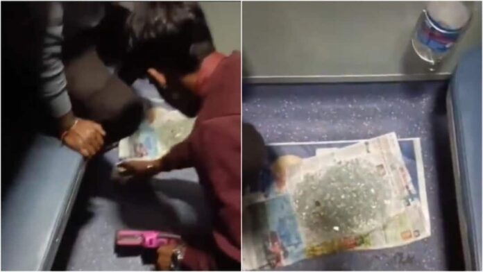 A video showing broken glass scattered on the floor of the coach later surfaced on social media. Railway staff promptly cleared the glass shards to ensure passenger safety, an official said.