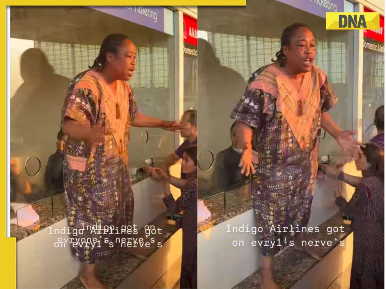 In a video circulating online, an unnamed woman is seen losing her temper at IndiGo ground staff, before grabbing the frame of a service window and striding barefoot to the counter.