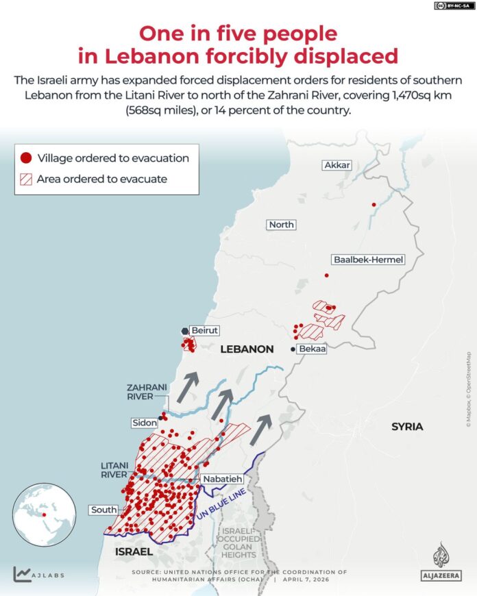“Until further notice, you are requested not to move south of the Litani River,” he said.