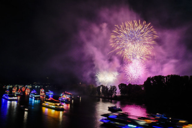 Officially, the event runs from May 1st to 3rd, but the highpoint is undoubtedly Saturday night, when festively lit boats travel upstream before a choreographed fireworks finale over the Rheinaue park.
