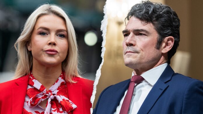 White House press secretary Karoline Leavitt, left, and Joe Kent, director of the National Counterterrorism Center. Kent announced his resignation on Tuesday, March 17, 2026. (Annabelle Gordon/AFP via Getty Images; Tom Williams/CQ-Roll Call, Inc via Getty Images)