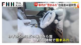 A photo taken in Sapporo on the morning of the 19th showed the inside of a car filled with snow. Snow had piled up on the driver’s seat and steering wheel, forming a mound inside the vehicle.