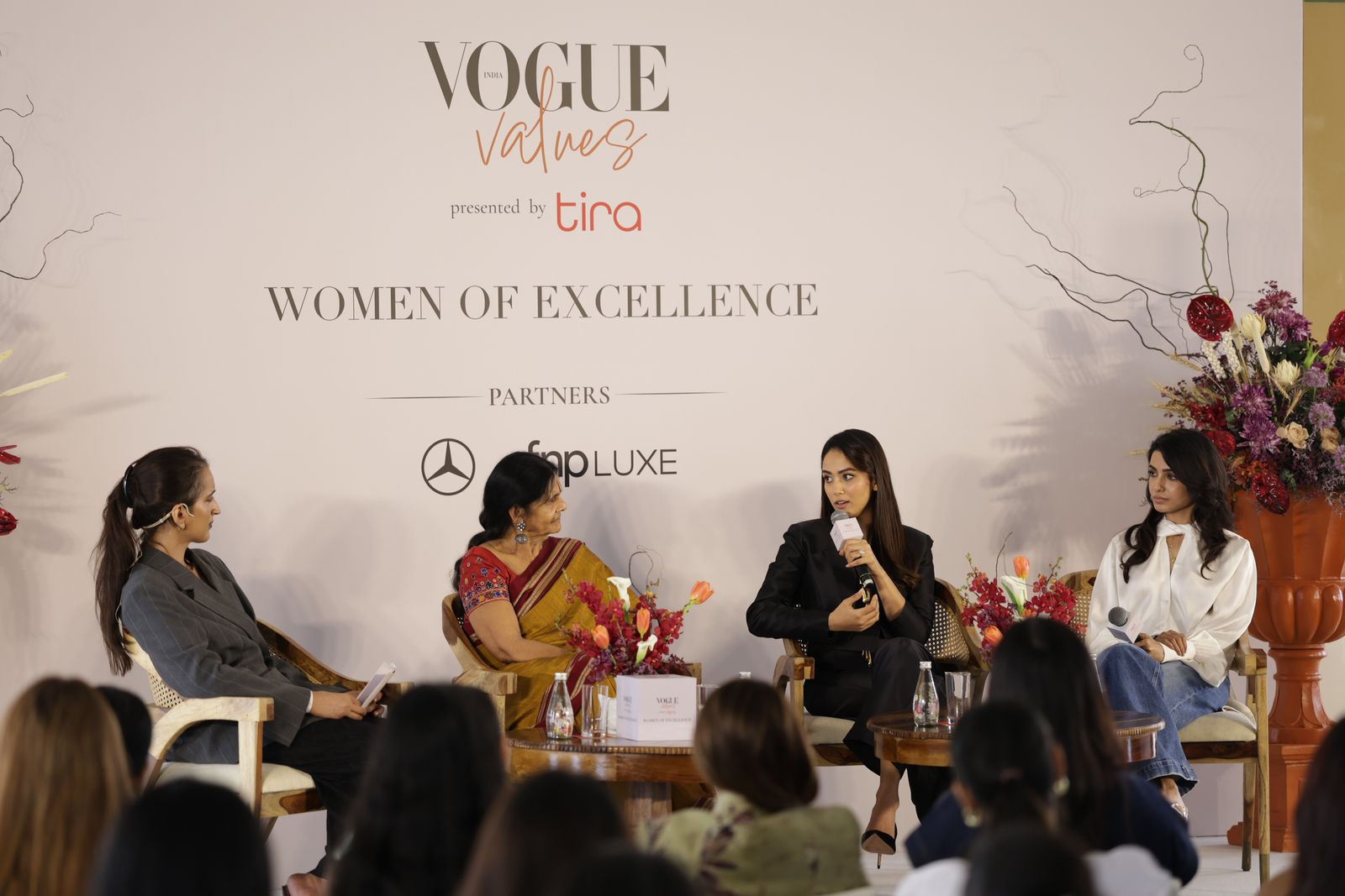 At the inaugural edition of Vogue Values: Women of Excellence, presented by Tira, the panel on leadership and entrepreneurship turned toward a simple question: how can women open doors for others while advancing themselves? Moderated by Vogue India’s Digital Editor, Sara Hussain, the conversation brought together Mira Rajput Kapoor, founder of Dhun Wellness; Samantha Ruth Prabhu, actor, investor and producer; and Chetna Gala Sinha, founder of Mann Deshi Mahila Sahakari Bank. Held on February 17 in partnership with Mercedes-Benz, Roku Gin and FnP Luxe, the panel explored power as a responsibility where influence can be used to widen the circle instead of simply securing your own seat.