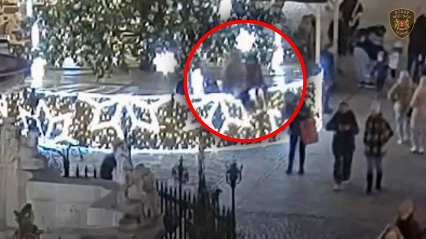 Kobiety usiadły na konstrukcji otaczającej choinkę, mimo wyraźnych zakazów.
